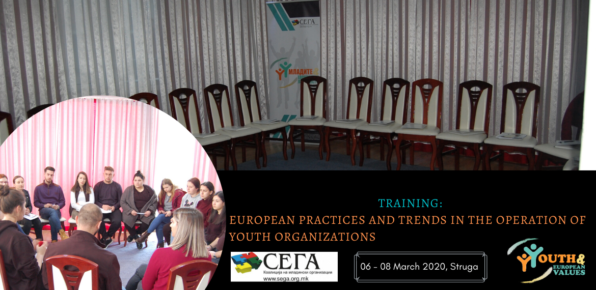 Coalition of youth organizations SEGA implements the project "Youth and European Values" supported by the General Secretariat of the Government of the Republic of Northern Macedonia, through the Program for financial support of associations and foundations. The project aims to contribute to a developed and sustainable civil society sector that adequately addresses the needs of young people.