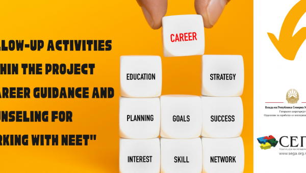 Within the project Career guidance and counseling for working with NEET 5 organizations (Fondacija Fokus - Veles, Inkluzija - Ohrid, Innova Lab - Bitola, Roma Progress - Skopje, Romano Chachipe - Skopje) working with young people successfully implemented the follow-up activities